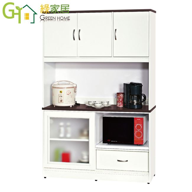 【綠家居】凱爾 環保4.2尺南亞塑鋼三開門&單推門單抽高餐櫃/收納櫃組合
