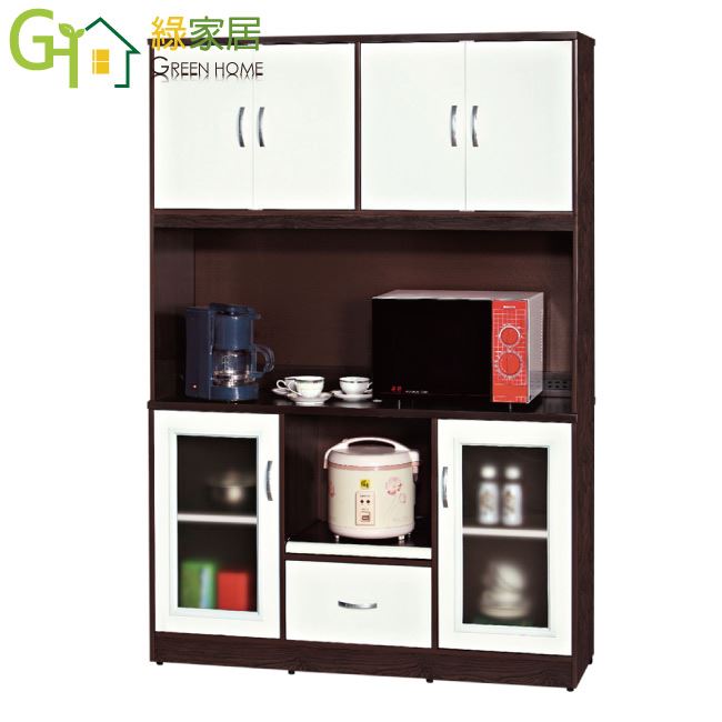 【綠家居】凱爾 環保4.4尺南亞塑鋼四門單抽高餐櫃/收納櫃組合