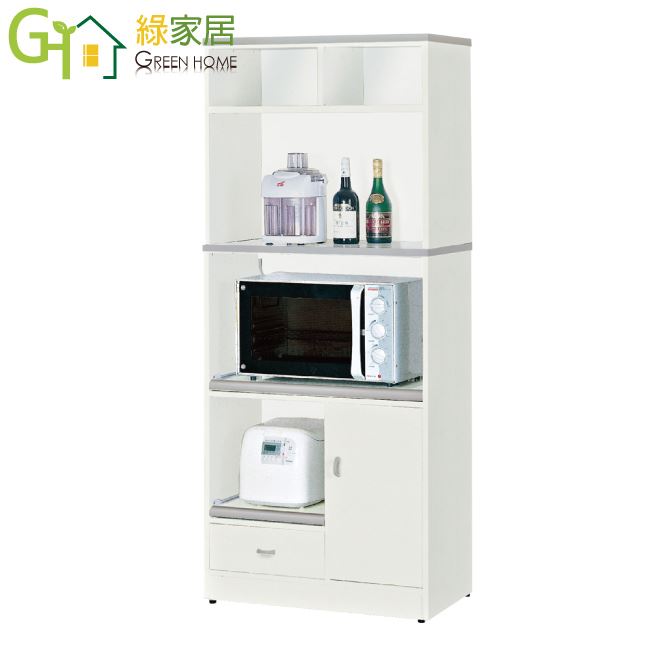 【綠家居】波仕 環保2.6尺南亞塑鋼玻璃推門單抽層架高餐櫃/收納櫃組合