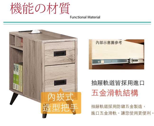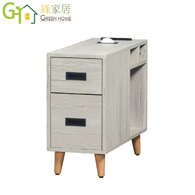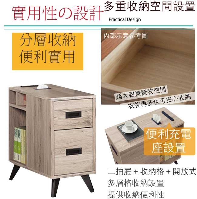 【綠家居】倫帝1尺二抽多功能桌邊櫃(二色可選+附充電插座)
