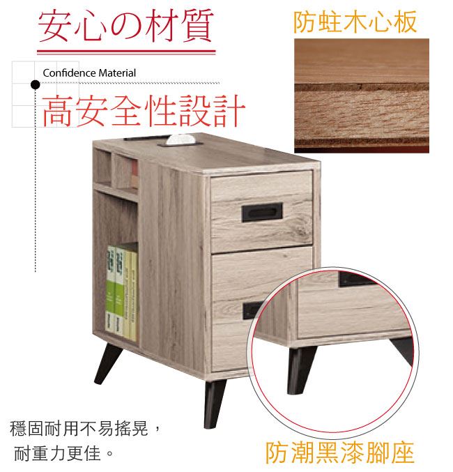 商 品 介 紹 | 【綠家居】倫帝1尺二抽多功能桌邊櫃(二色可選+附充電插座) 二色可選+現代簡約風格+安心材質製造,整體採用防蛀木心板+防刮耐磨腳座+五金滑軌結構等安心材質製造,產品外層採用防潮耐磨噴漆處理搭配採用二抽屜+開放式收納+附充電插座等收納空間設計,全由專人配送到家,專業安心服務,替你省下更多時間! 【商品特色】 二色可選+現代簡約風格+安心材質製造,使用放心+搭配居家更便利 採用防蛀木心板+防刮耐磨腳座+五金滑軌結構等安心材質製造 產品外層採用防潮耐磨噴漆處理 搭配採用二抽屜+開放式收納+附充電插座等收納空間設計 此商品不需要DIY組立,此商品為組立後之成品 品質保證、專業設計、貼心服務 全由專人配送到家,專業安心服務,替您省下更多時間 |