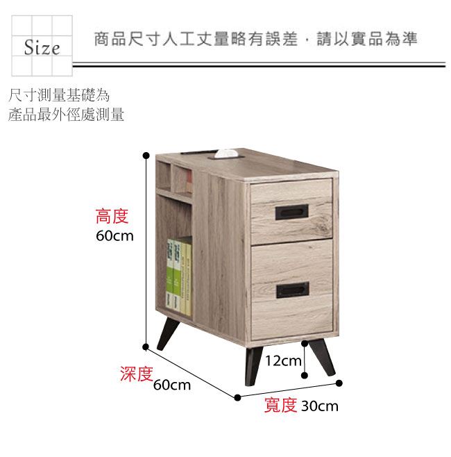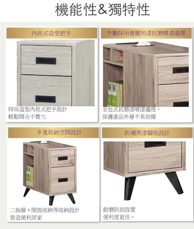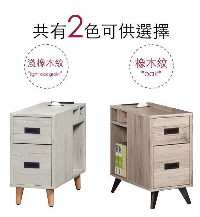 - ◆產品名稱:【綠家居】倫帝1尺二抽多功能桌邊櫃(二色可選+附充電插座)