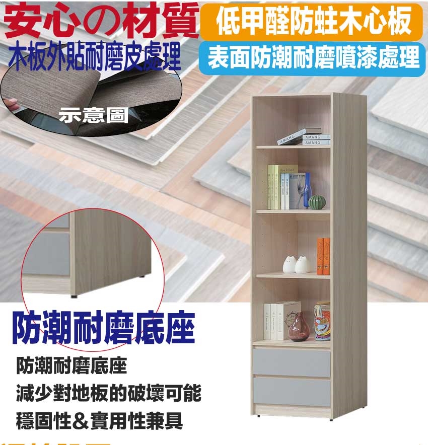★偏遠地區需額外加收運費,下標請先問與答詢問★ ★下訂前注意 由於商品流動較快,下訂前請先詢問是否有貨在下訂喔~★ 【綠家居】莫凡雙色2尺開放二抽書櫃 木紋雙色系+安心材質製造,使用放心+搭配居家更便利,採用防蛀木心板+防潮耐磨底座+五金滑軌結構等安心材質製造 ,外層採用防潮耐磨噴漆處理搭配採用二抽屜+開放層格等收納空間設計,全由專人配送到家,專業安心服務,替你省下更多時間!