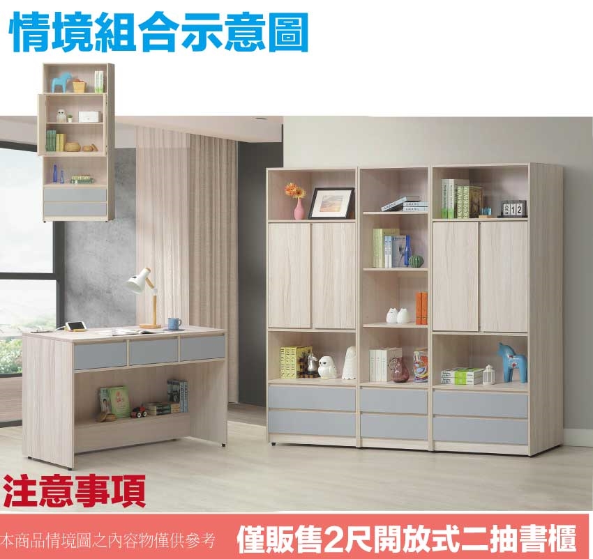 【綠家居】莫凡雙色2尺開放二抽書櫃