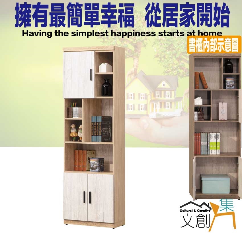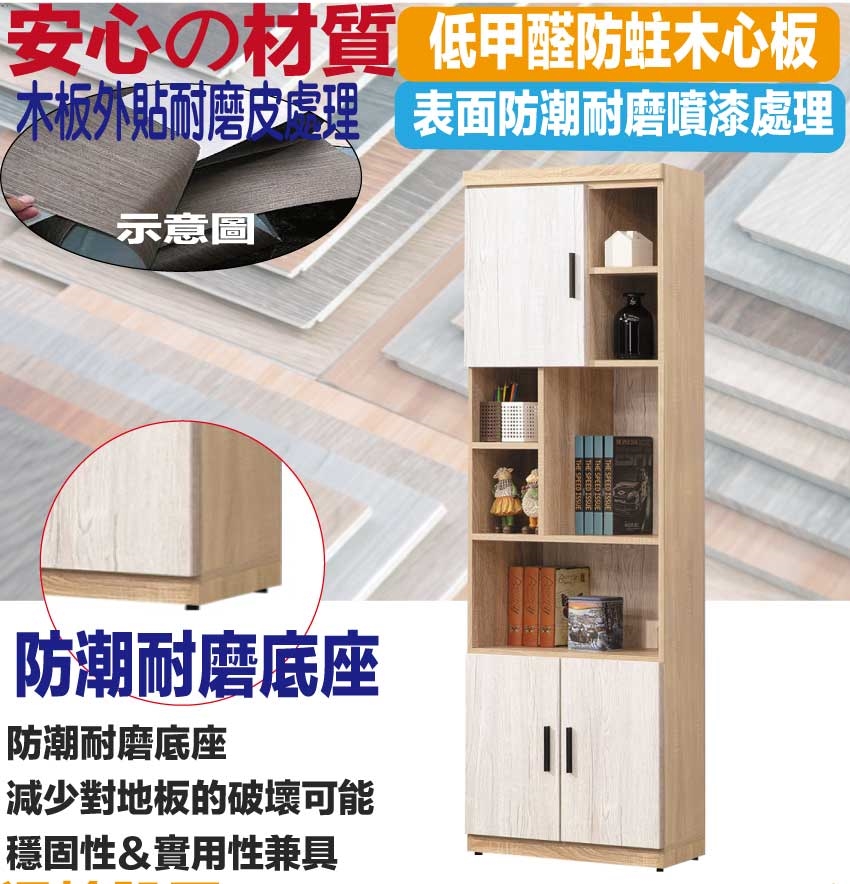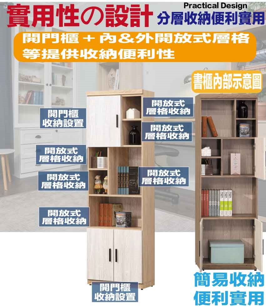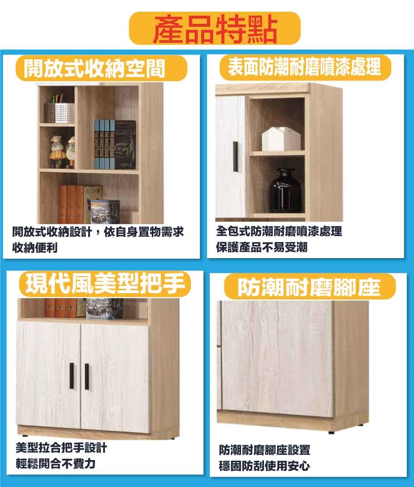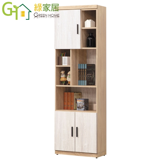 【綠家居】美尼利雙色2尺三門開放書櫃