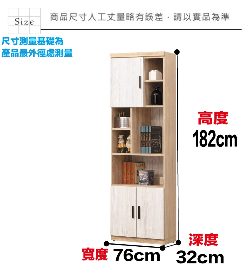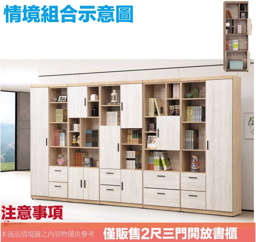 - ◆產品名稱:【綠家居】美尼利雙色2尺三門開放書櫃