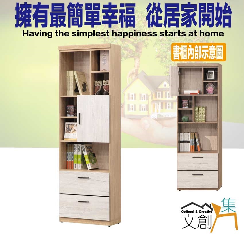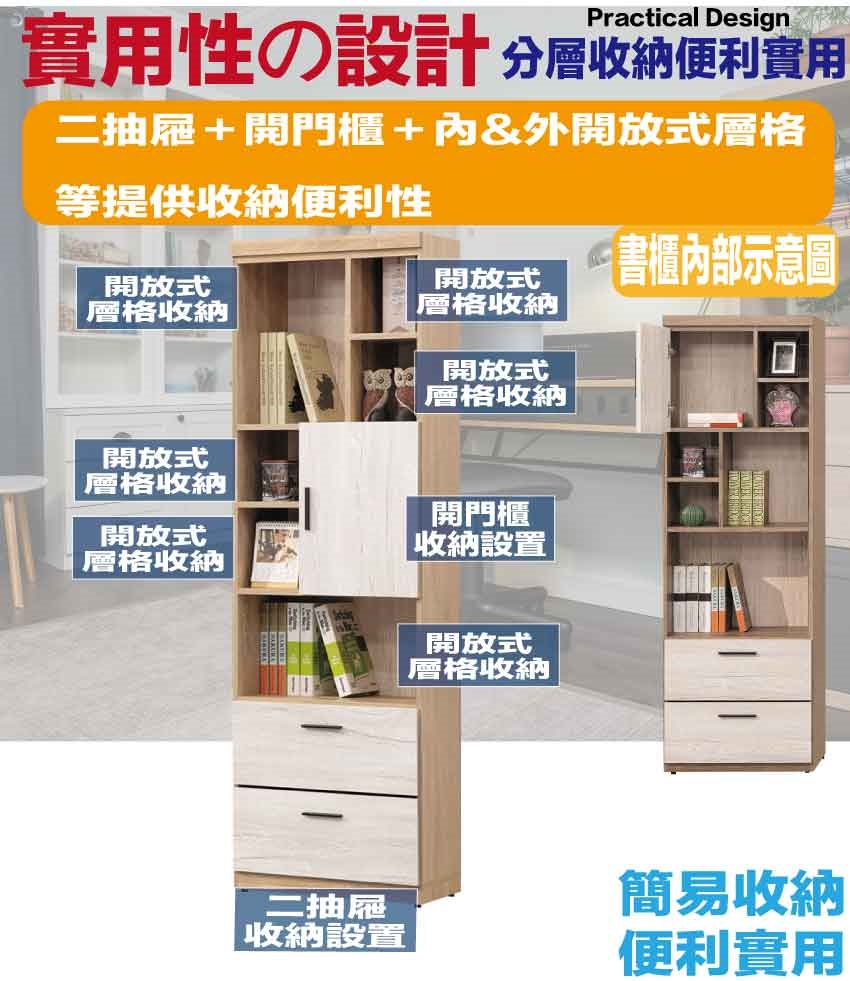 - ◆產品名稱:【綠家居】美尼利雙色2尺單門二抽書櫃