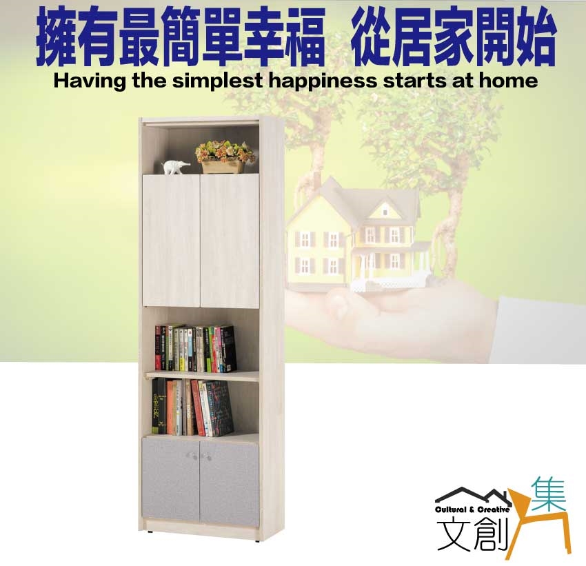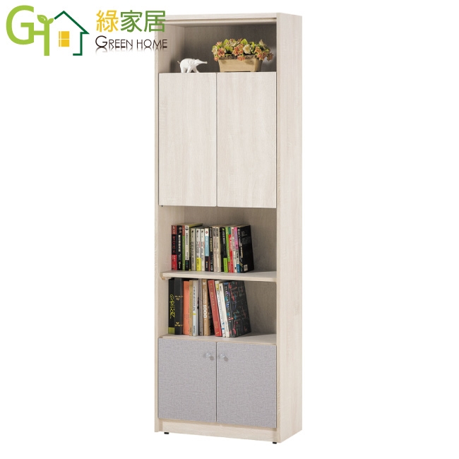 【綠家居】愛利四門2尺中空雙色書櫃