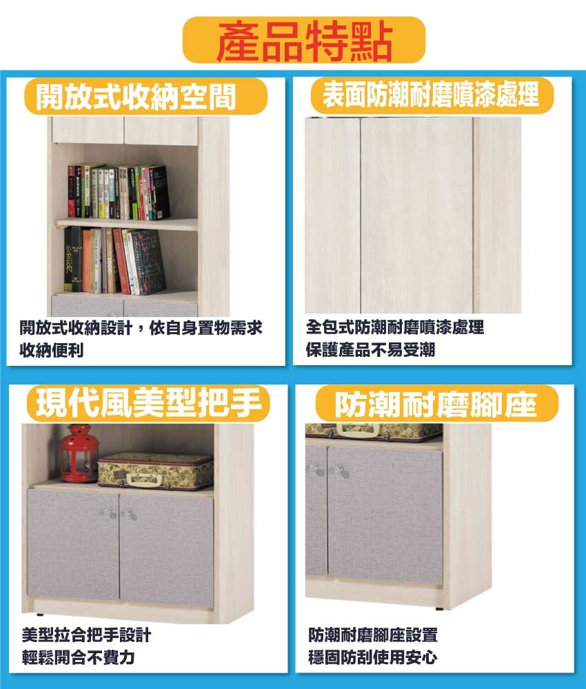 - ◆產品名稱:【綠家居】愛利四門2尺中空雙色書櫃
