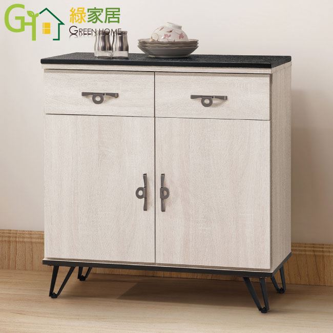 【綠家居】洛沃 時尚2.7尺雲紋石面餐櫃/收納櫃