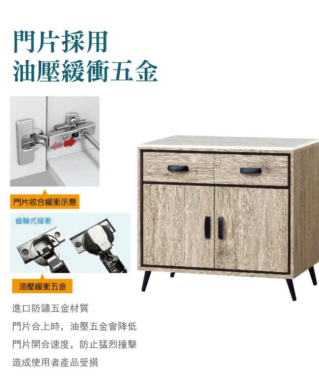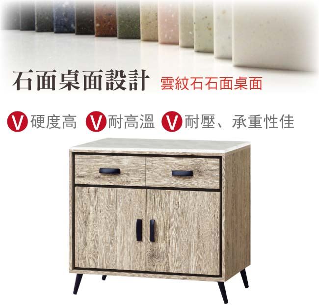 【綠家居】愛麗歐 現代2.8尺雲紋石面餐櫃/收納櫃
