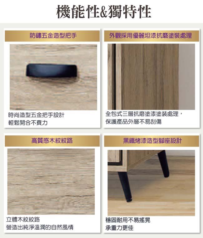 - 防夾手緩衝五金+黑鐵烤漆腳座