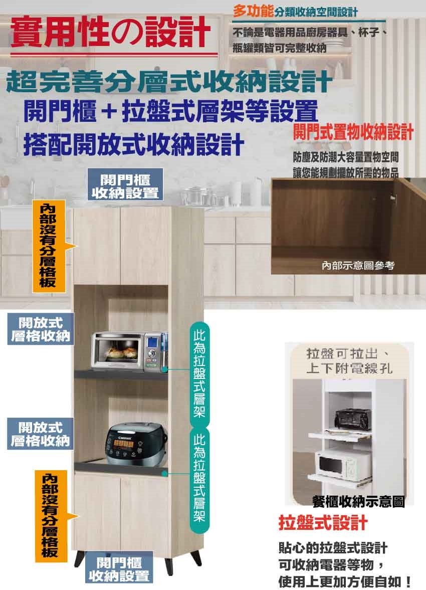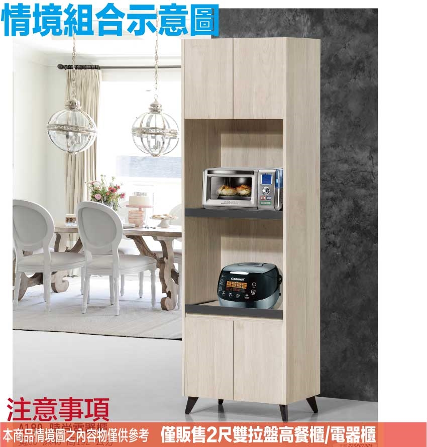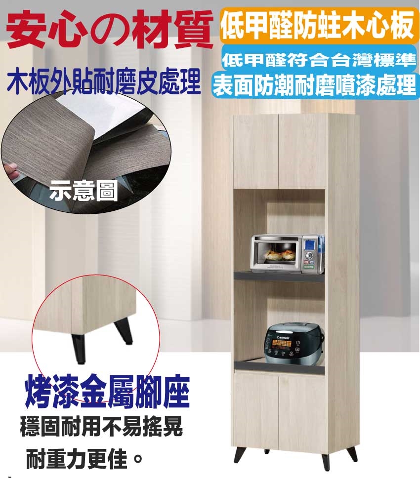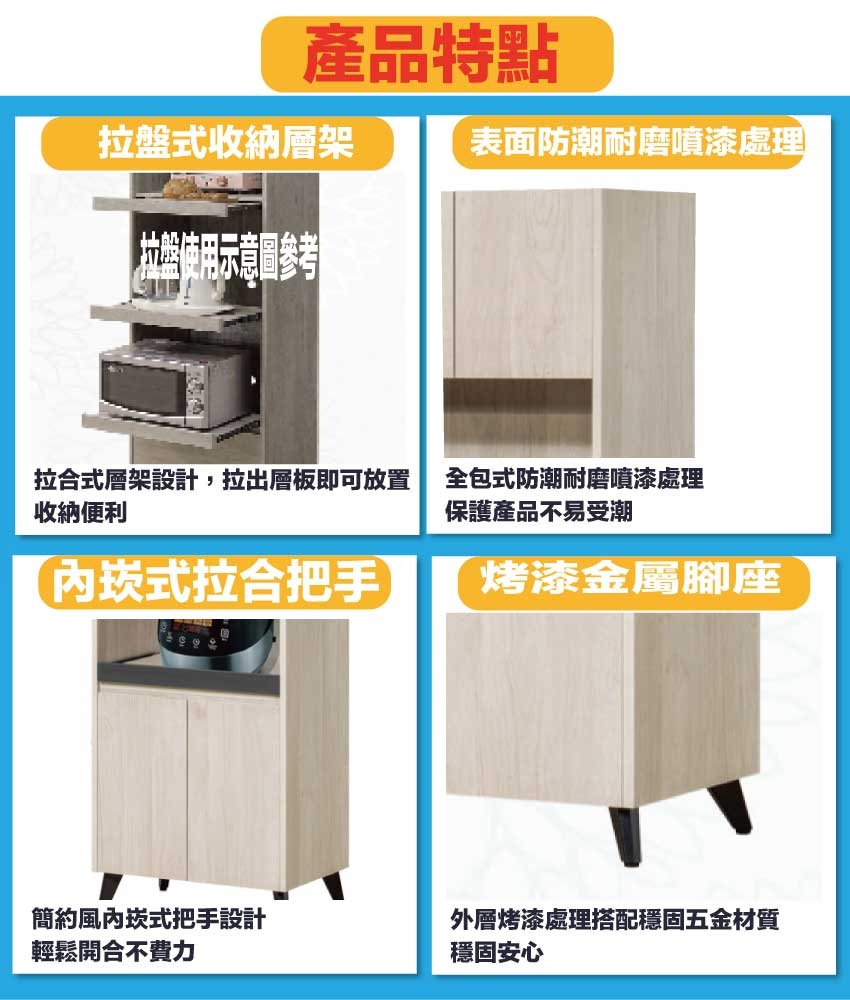 - ◆產品名稱:【綠家居】蓋曼2尺雙拉盤四門電器櫃/高餐櫃