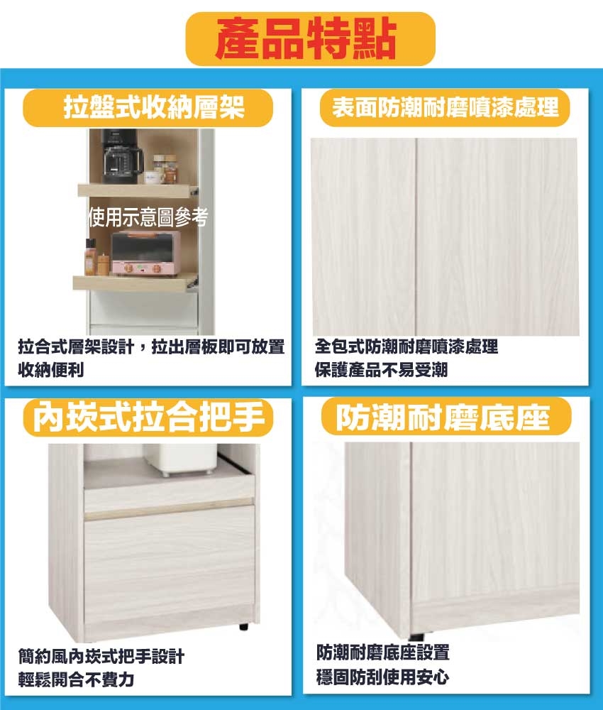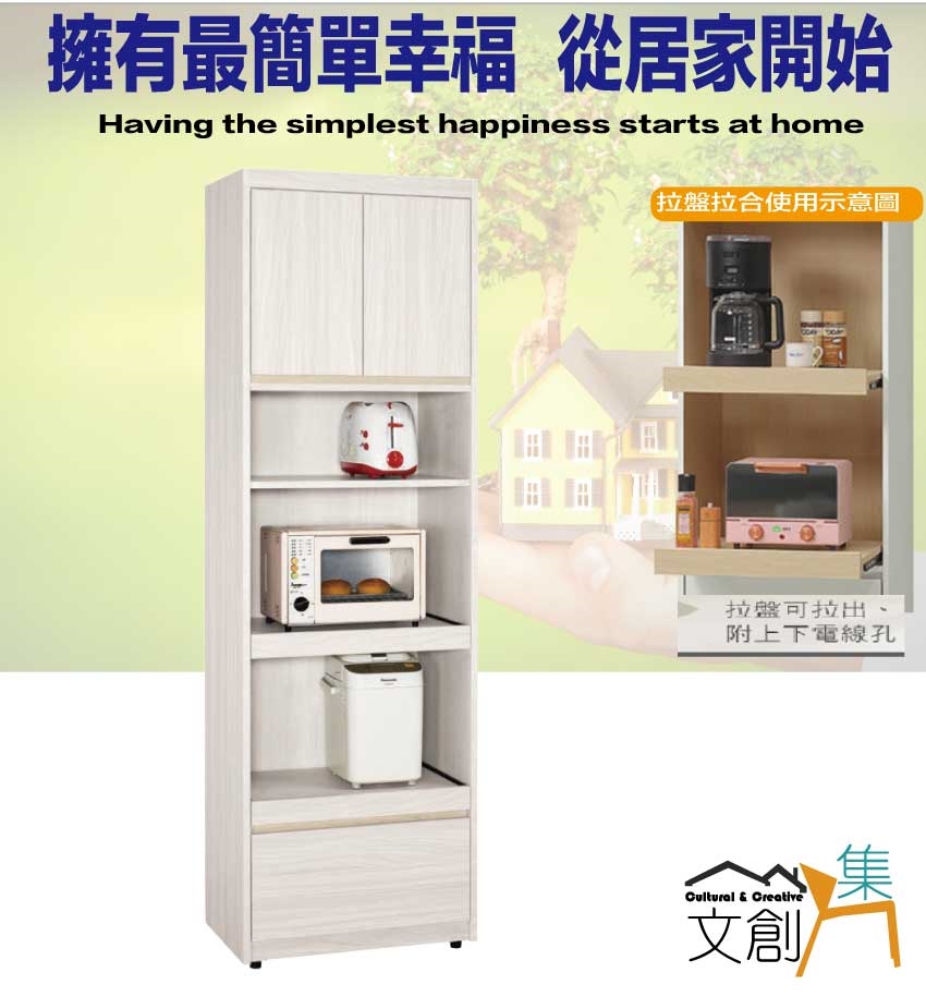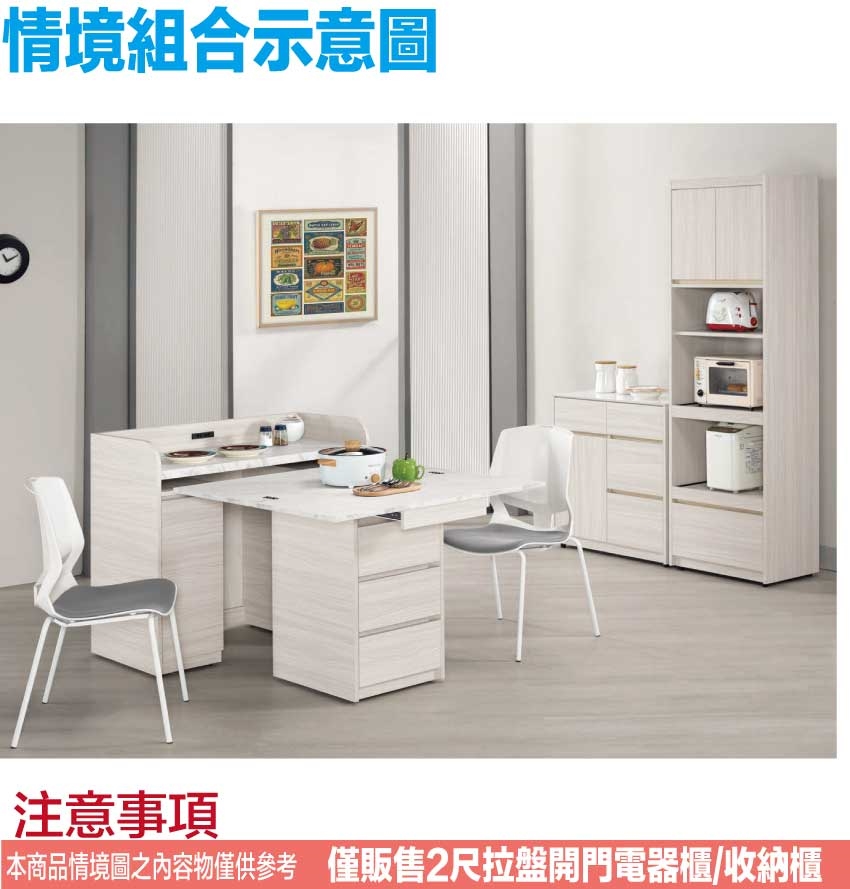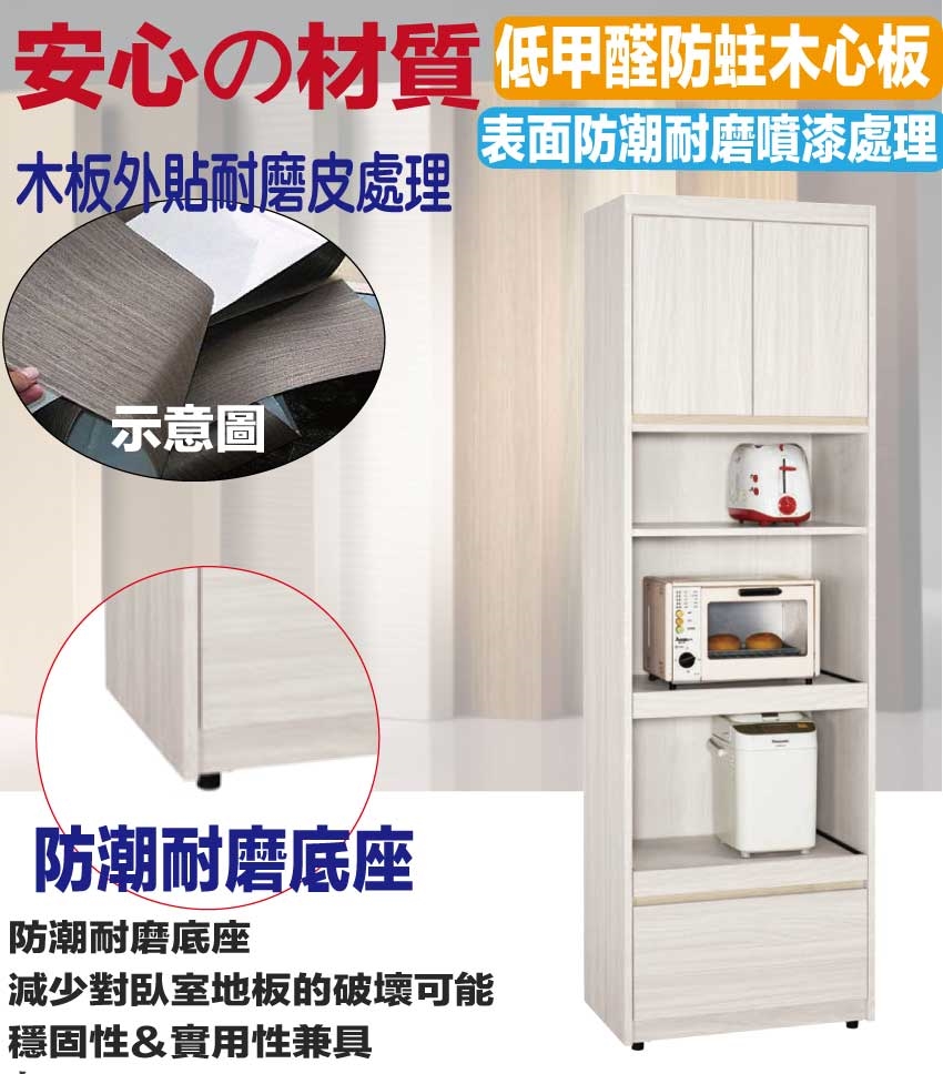 - ◆產品名稱:【綠家居】寶亞2尺開門拉盤單抽高餐櫃/電器櫃