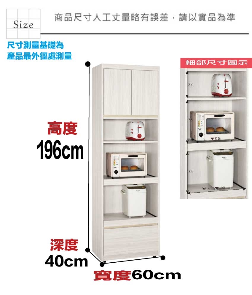 尺寸:(寬)60x(深)40x(高)196/公分