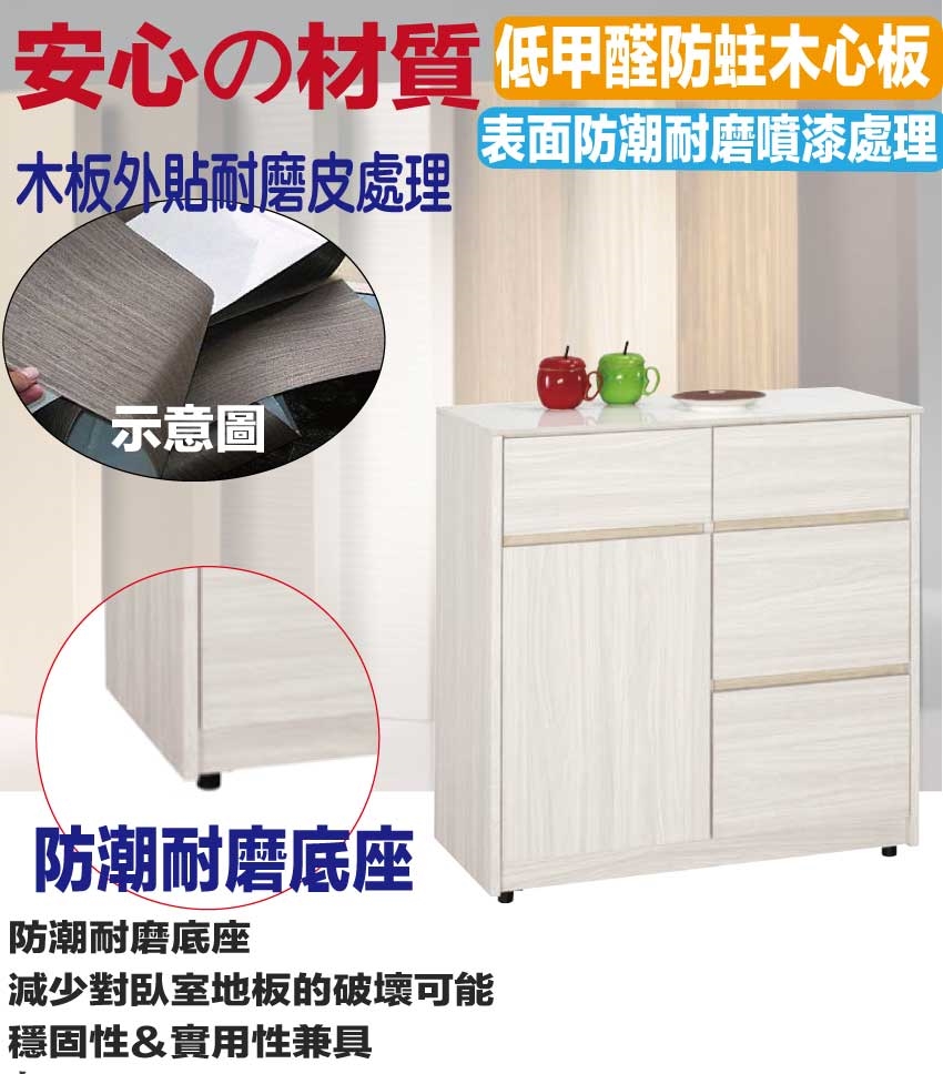 【綠家居】寶亞2.7尺岩板四抽低餐櫃 木紋雙色系+安心材質製造,使用放心+搭配居家更便利,採用防蛀木心板+防潮耐磨底座+防夾手緩衝門片五金+12mm高硬度岩板桌面板+五金滑軌結構等安心材質製造 ,外層採用防潮耐磨噴漆處理搭配採用開門櫃+四抽屜+內開放層格等收納空間設計,全由專人配送到家,專業安心服務,替你省下更多時間!