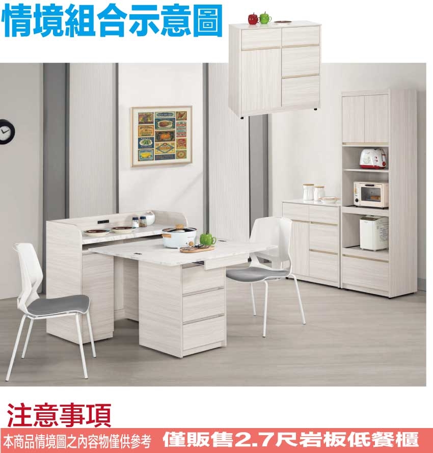 【綠家居】寶亞2.7尺岩板四抽低餐櫃
