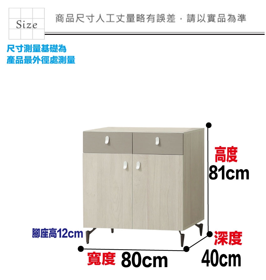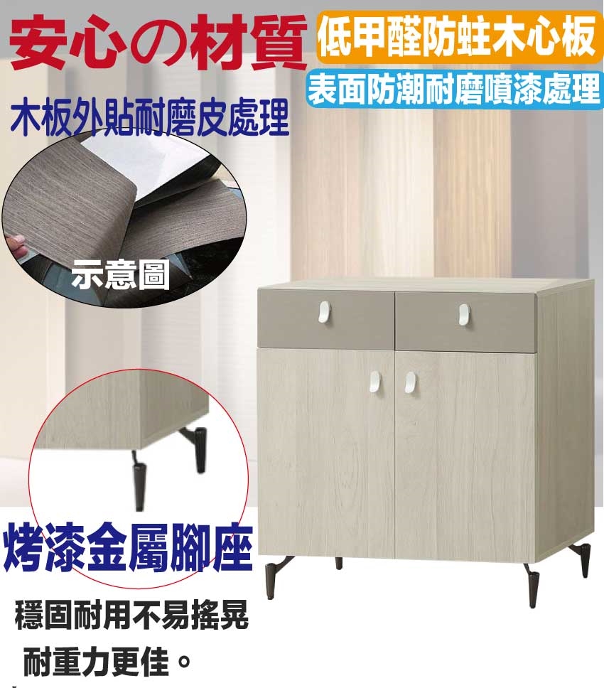- ◆產品名稱:【綠家居】蒂斯2.7尺二門二抽低餐櫃
