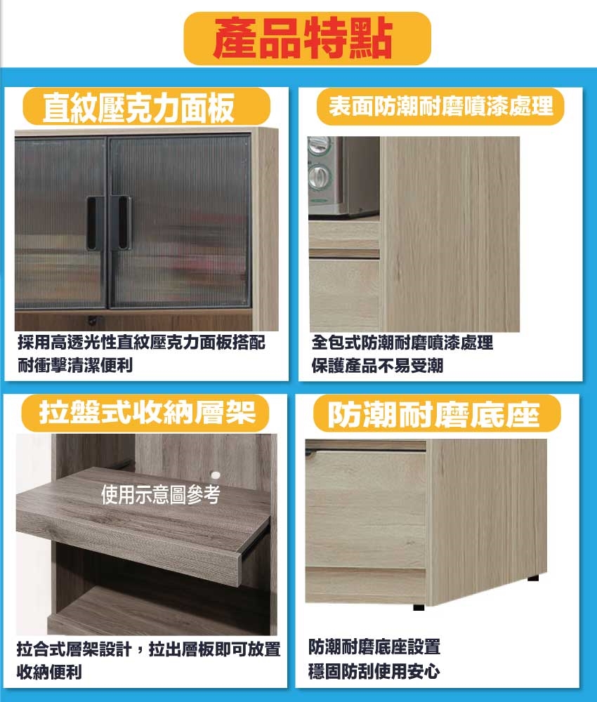 ★偏遠地區需額外加收運費,下標請先問與答詢問★ ★下訂前注意 由於商品流動較快,下訂前請先詢問是否有貨在下訂喔~★ 【綠家居】畢克爾2.5尺二門拉盤鋁框電器櫃/高餐櫃 橡木紋色系+安心材質製造,使用放心+搭配居家更便利,採用防蛀木心板+防潮耐磨底座+黑漆鋁製門框+長虹PC材質門片+防夾手緩衝門片五金+五金滑軌結構等安心材質製造 ,外層採用防潮耐磨噴漆處理搭配採用開門櫃+拉盤層架+單抽屜+內&外開放層格等收納空間設計,全由專人配送到家,專業安心服務,替你省下更多時間!