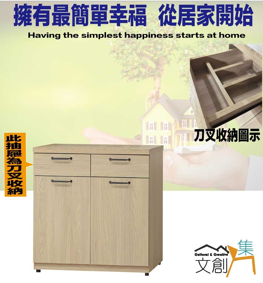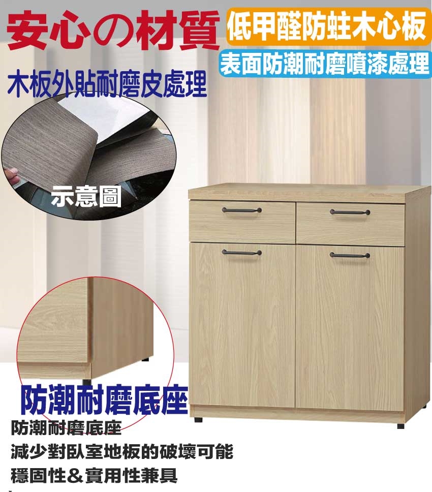 ★偏遠地區需額外加收運費,下標請先問與答詢問★ ★下訂前注意 由於商品流動較快,下訂前請先詢問是否有貨在下訂喔~★ 【綠家居】芮德爾2.7尺二門二抽低餐櫃 橡木紋色系+安心材質製造,使用放心+搭配居家更便利,採用防蛀木心板+防潮耐磨底座+防夾手緩衝門片五金+五金滑軌結構等安心材質製造 ,外層採用防潮耐磨噴漆處理搭配採用開門櫃+二抽屜(含刀叉收納抽)+內&外開放層格等收納空間設計,全由專人配送到家,專業安心服務,替你省下更多時間!