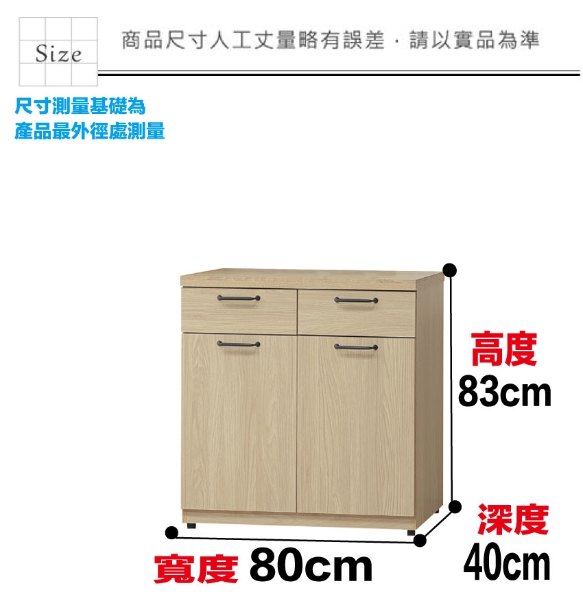 - ◆產品名稱:【綠家居】芮德爾2.7尺二門二抽低餐櫃