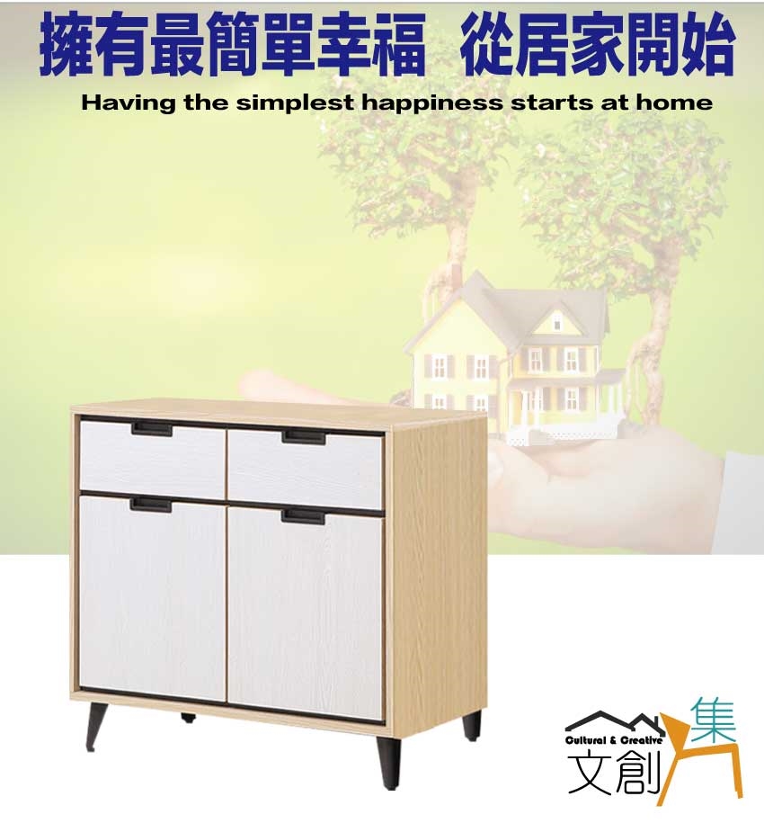 【綠家居】亞卡利雙色2.8尺二門二抽低餐櫃