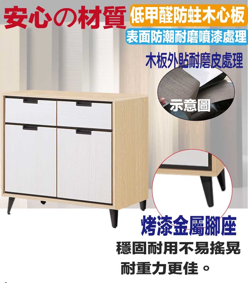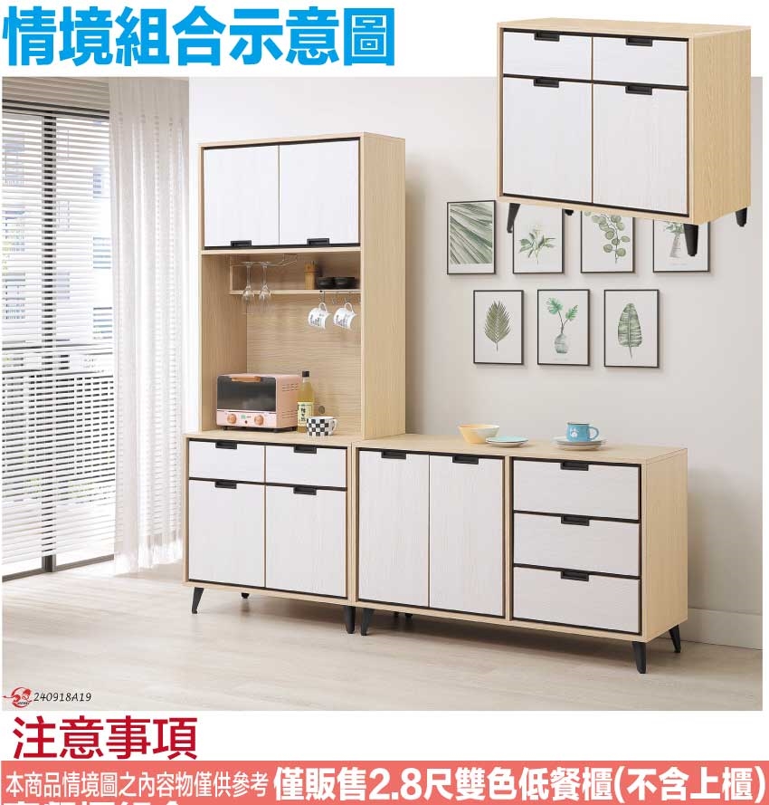 ★偏遠地區需額外加收運費,下標請先問與答詢問★ ★下訂前注意 由於商品流動較快,下訂前請先詢問是否有貨在下訂喔~★ 【綠家居】亞卡利雙色2.8尺二門二抽低餐櫃 木紋雙色系+安心材質製造,使用放心+搭配居家更便利,採用防蛀木心板+五金滑軌結構+防夾手緩衝門片五金+烤漆五金腳座等安心材質製造 ,外層採用防潮耐磨噴漆處理搭配採用開門櫃+二抽屜+內開放層格等收納空間設計,全由專人配送到家,專業安心服務,替你省下更多時間!