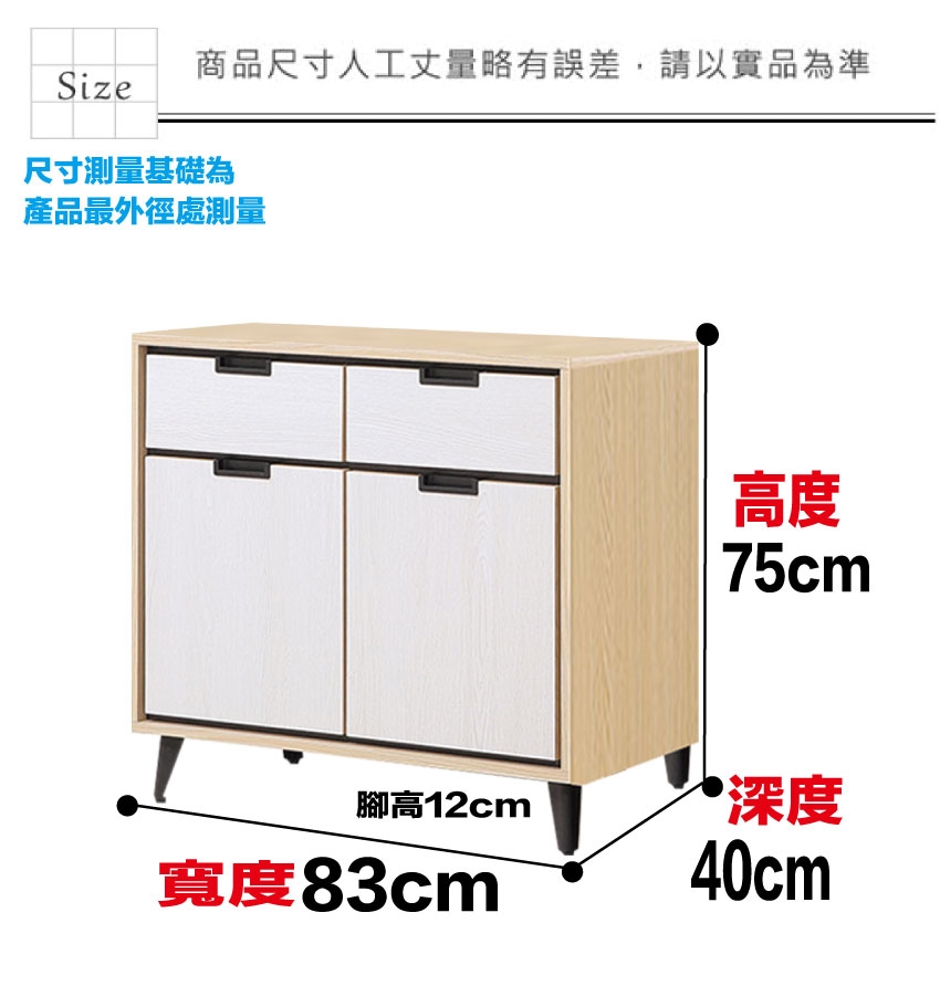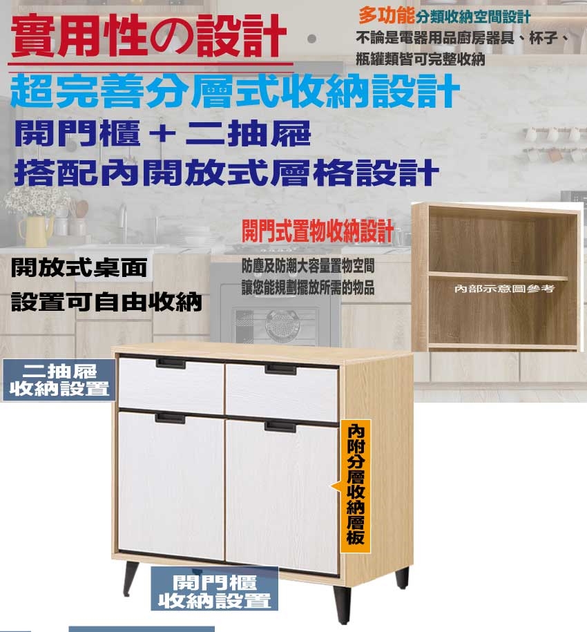 - ◆產品名稱:【綠家居】亞卡利雙色2.8尺二門二抽低餐櫃