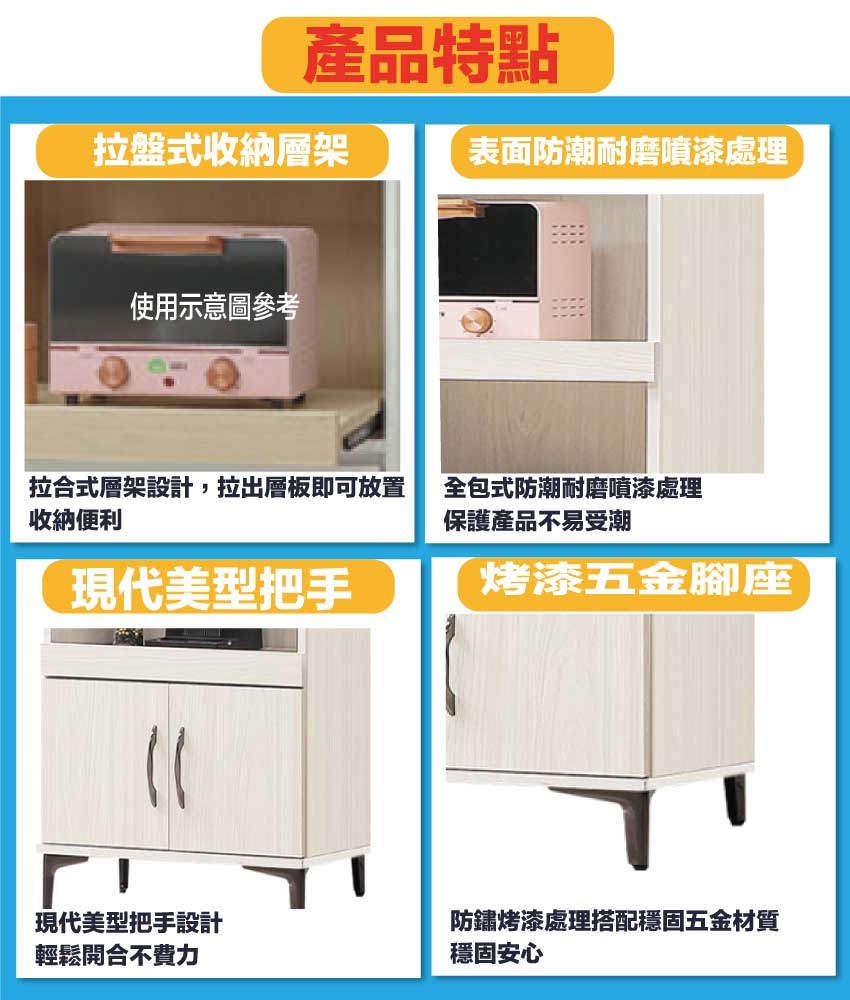 - ◆產品名稱:【綠家居】安特淺橡2尺四門拉盤高電器櫃/餐櫃