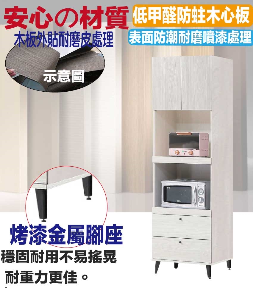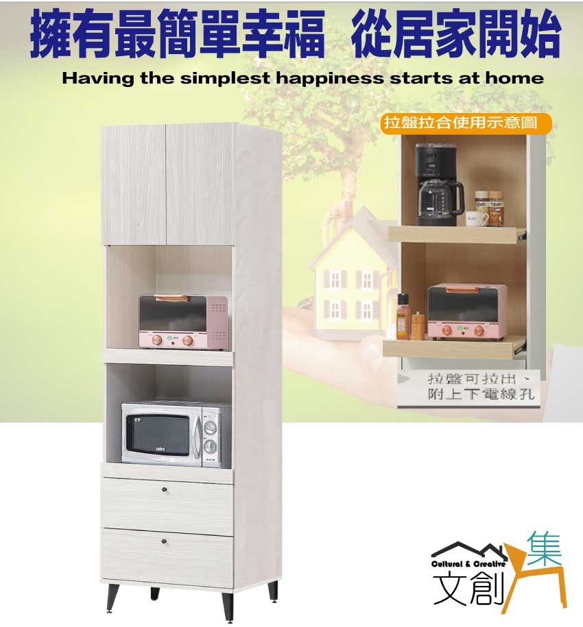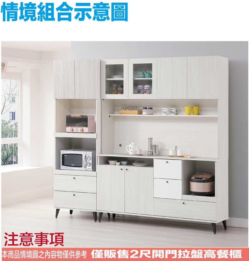 - ◆產品名稱:【綠家居】亞卡淺橡2尺二門二抽拉盤高電器櫃/餐櫃