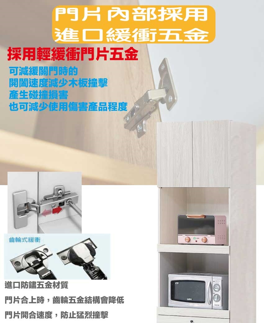 採用防蛀木心板+五金滑軌結構+烤漆五金腳座+防夾手緩衝門片五金等安心材質製造