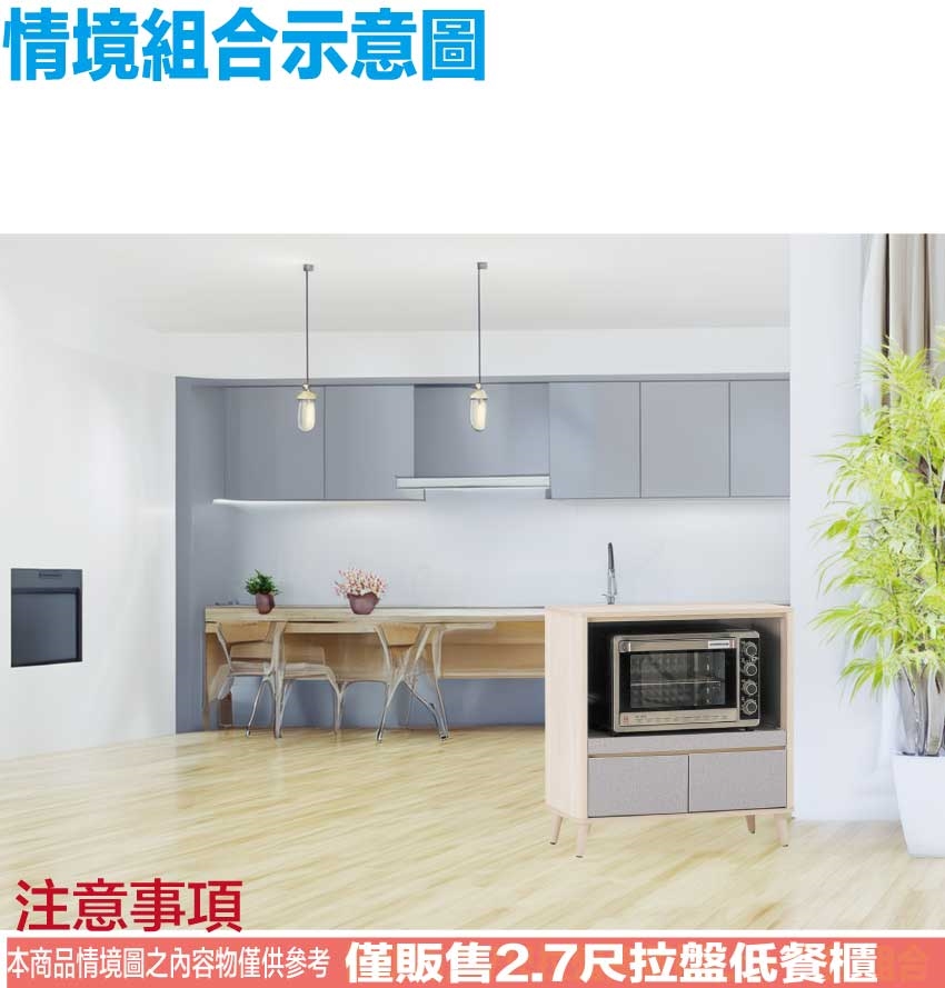 ★偏遠地區需額外加收運費,下標請先問與答詢問★ ★下訂前注意 由於商品流動較快,下訂前請先詢問是否有貨在下訂喔~★ 【綠家居】愛利雙色2.7尺二抽拉盤低餐櫃 木紋雙色系+安心材質製造,使用放心+搭配居家更便利,採用防蛀木心板+五金滑軌結構+防刮實木腳座等安心材質製造 ,外層採用防潮耐磨噴漆處理搭配採用二抽屜+開放層格+拉盤層架等收納空間設計,全由專人配送到家,專業安心服務,替你省下更多時間!