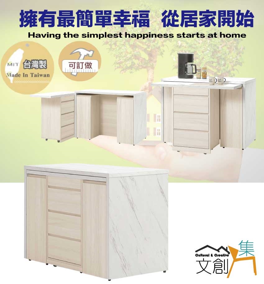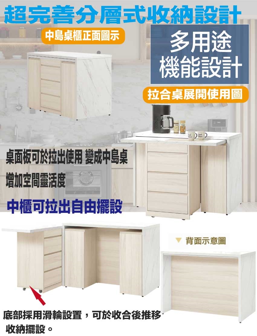 中島桌櫃可拉出分開使用,增加居家使用便利性