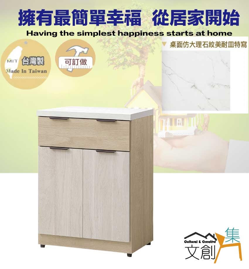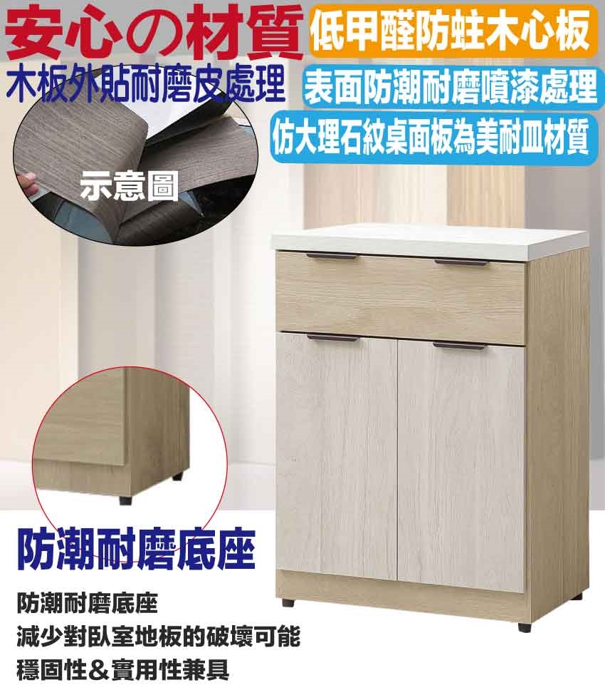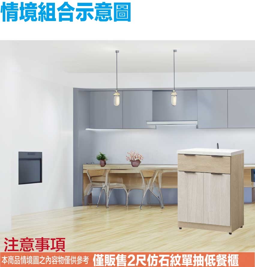 ★偏遠地區需額外加收運費,下標請先問與答詢問★ ★下訂前注意 由於商品流動較快,下訂前請先詢問是否有貨在下訂喔~★ 【綠家居】蘿克2尺二門單抽低餐櫃 現代雙色系+安心材質製造,使用放心+搭配居家更便利,採用防蛀木心板+防潮潮耐磨底座+五金滑軌結構+仿大理石紋耐磨美耐皿材質桌面板等安心材質製造 ,外層採用防潮耐磨噴漆處理搭配採用開門櫃+單抽屜+內開放層格等收納空間設計,全由專人配送到家,專業安心服務,替你省下更多時間!