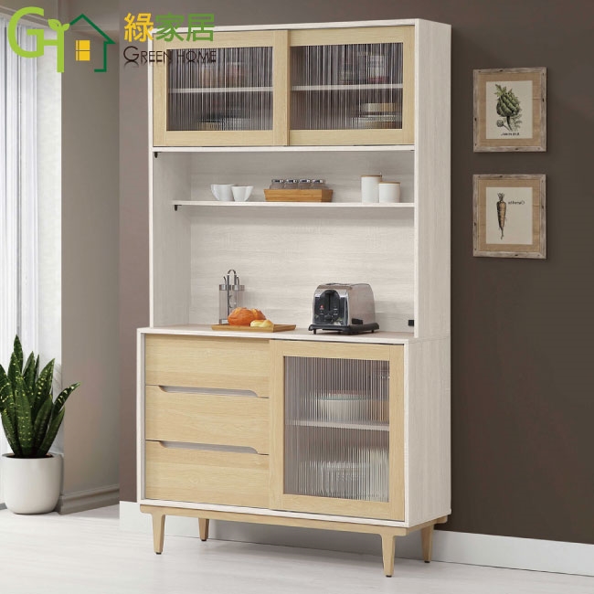 【綠家居】菲可雙色4尺推門三抽高餐櫃組合