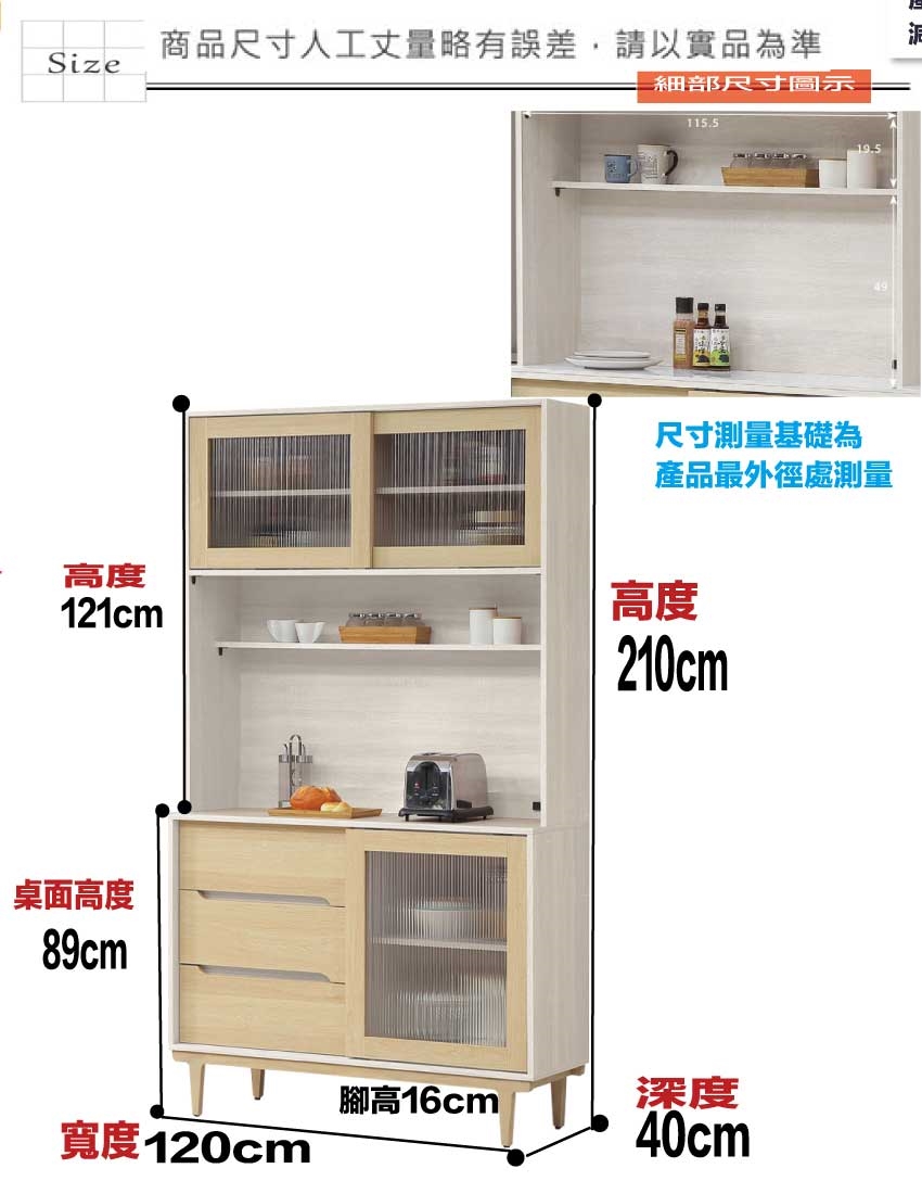 - ◆產品名稱:【綠家居】菲可雙色4尺推門三抽高餐櫃組合