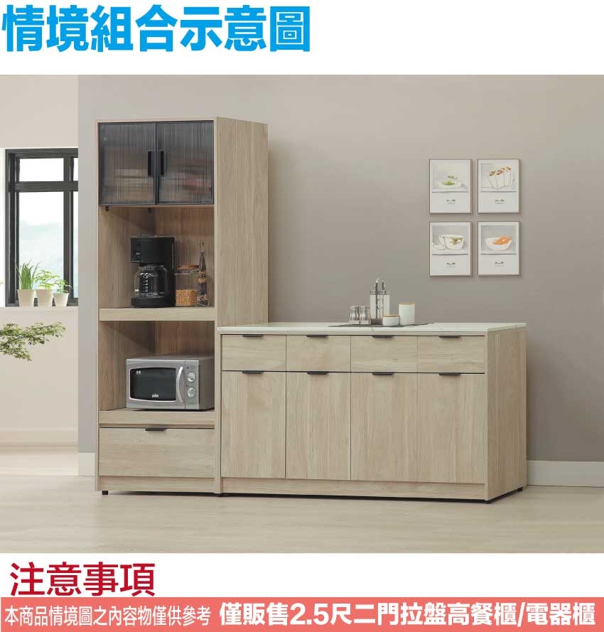 - 產品名稱:【綠家居】珊可2尺二門雙拉盤高電器櫃/餐櫃