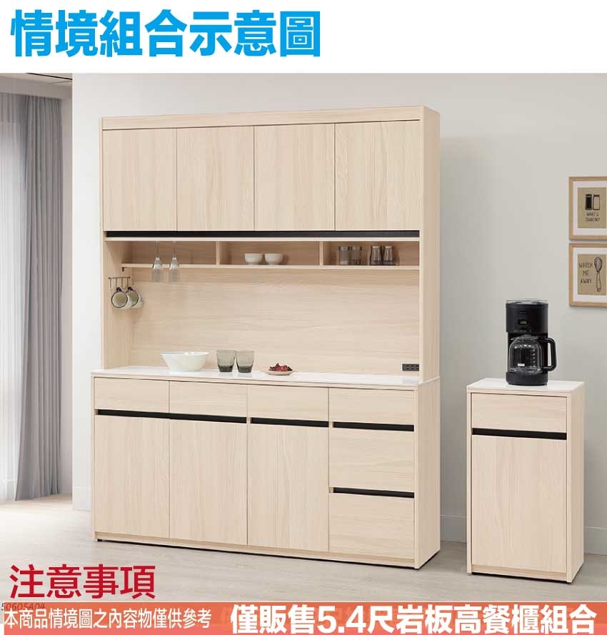 - 產品名稱:【綠家居】波可5.4尺岩板高餐櫃組合(內含插座)