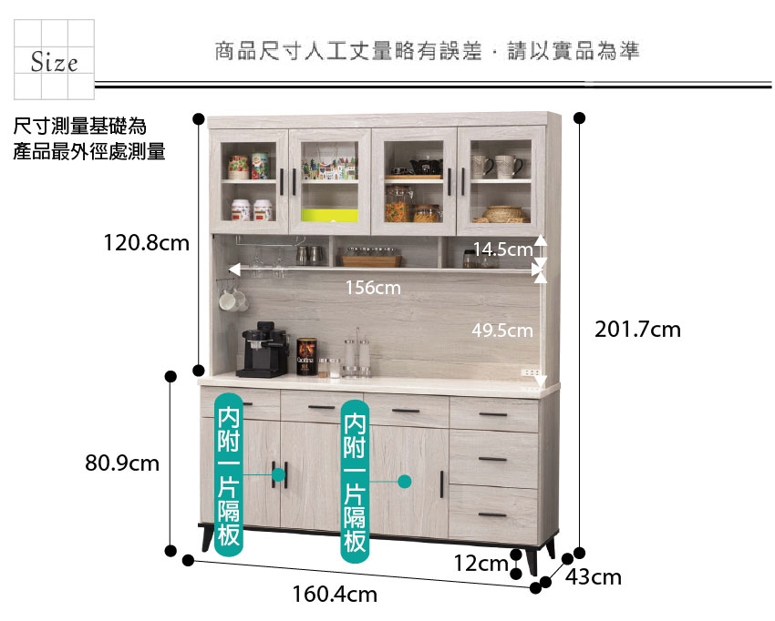 - 尺寸:(寬)160.4x(深)43x(高)201.7/公分
