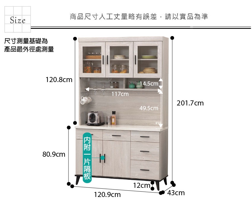 - 尺寸:(寬)120.9x(深)43x(高)201.7/公分