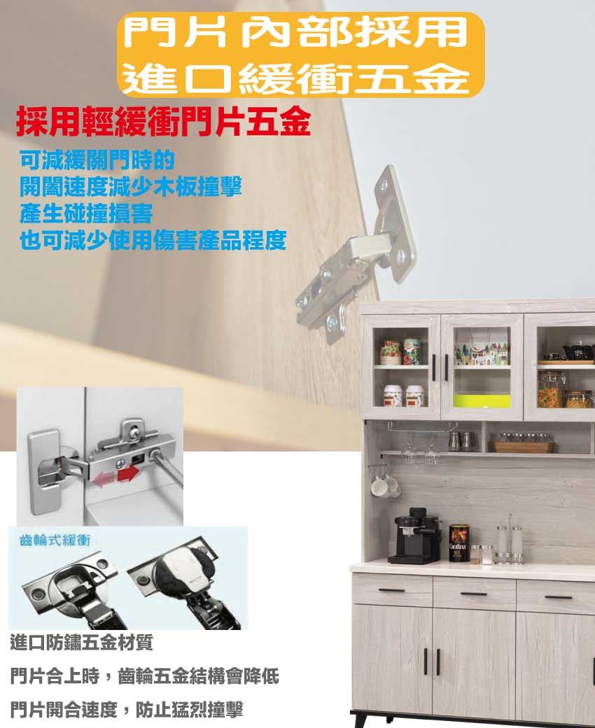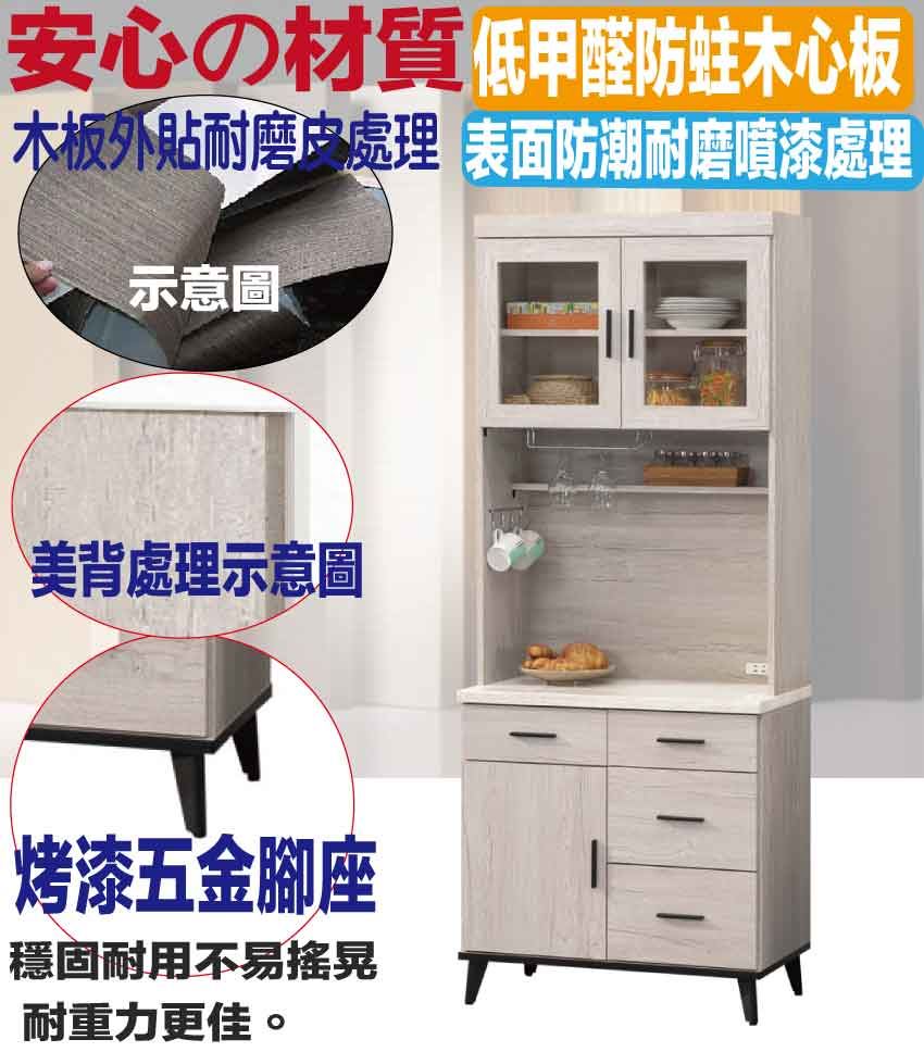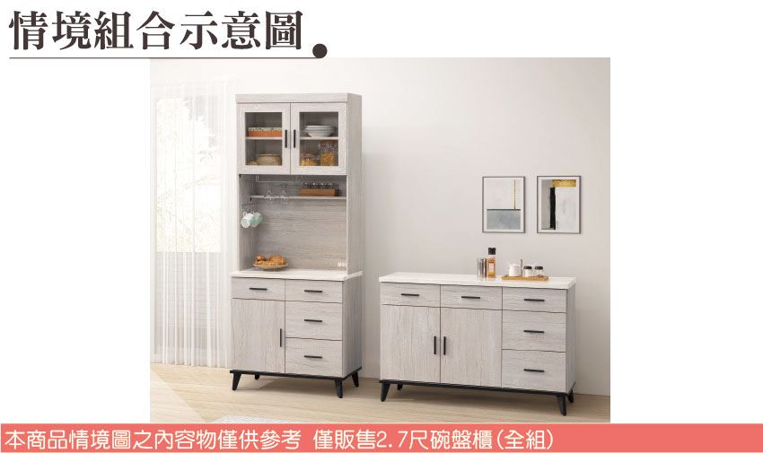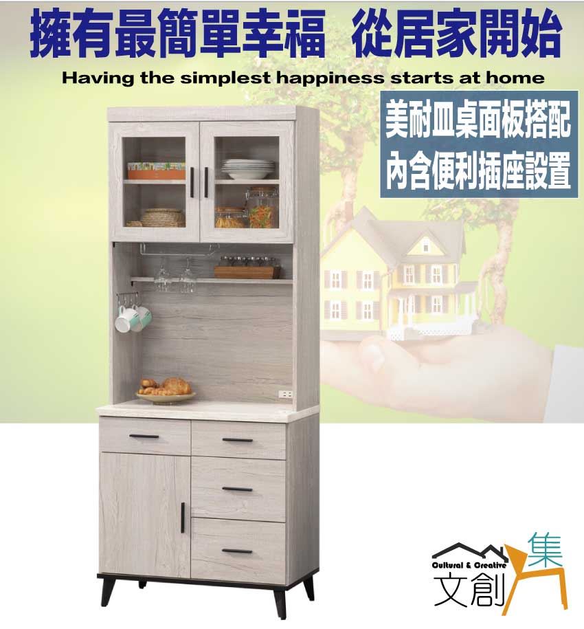 - 產品名稱:【綠家居】凱曼雙色2.7尺三門四抽高餐櫃組合(內含插座+仿石紋耐磨美耐皿桌面板)