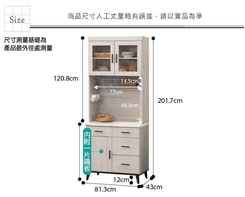 - 尺寸:(寬)81.3深)43x(高)201.7/公分