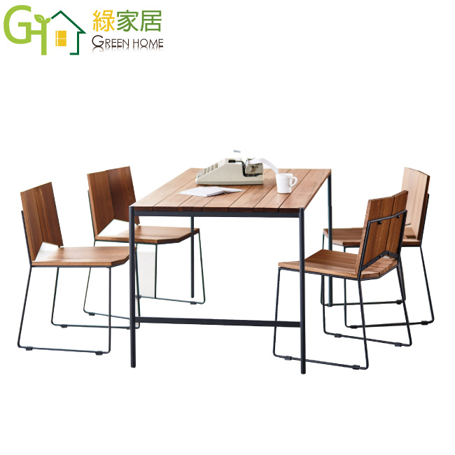 【綠家居】奧拉妮 工業風5尺實木餐桌椅組合(一桌四椅組合)
