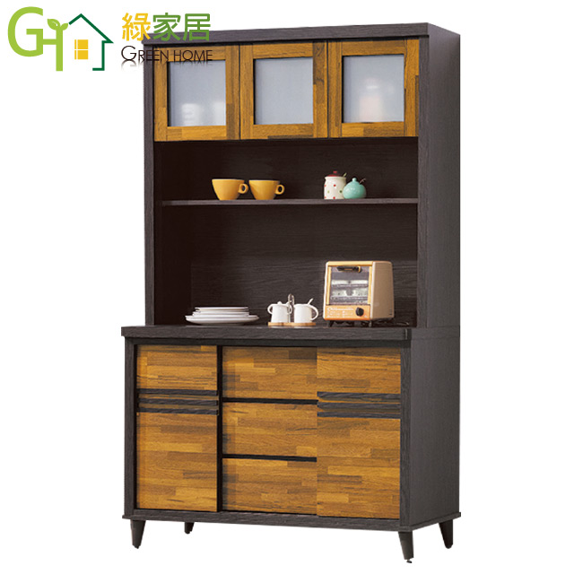 【綠家居】賽普 時尚4尺三抽餐櫃/收納櫃組合(上+下座)
