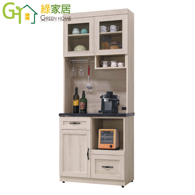 【綠家居】華倫 現代2.7尺雲紋石面餐櫃/收納櫃組合(上+下座)