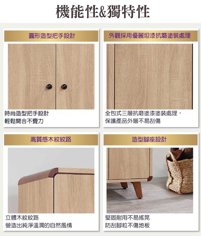 產品名稱:【綠家居】麥味登 時尚2尺橡木紋高餐櫃/收納櫃