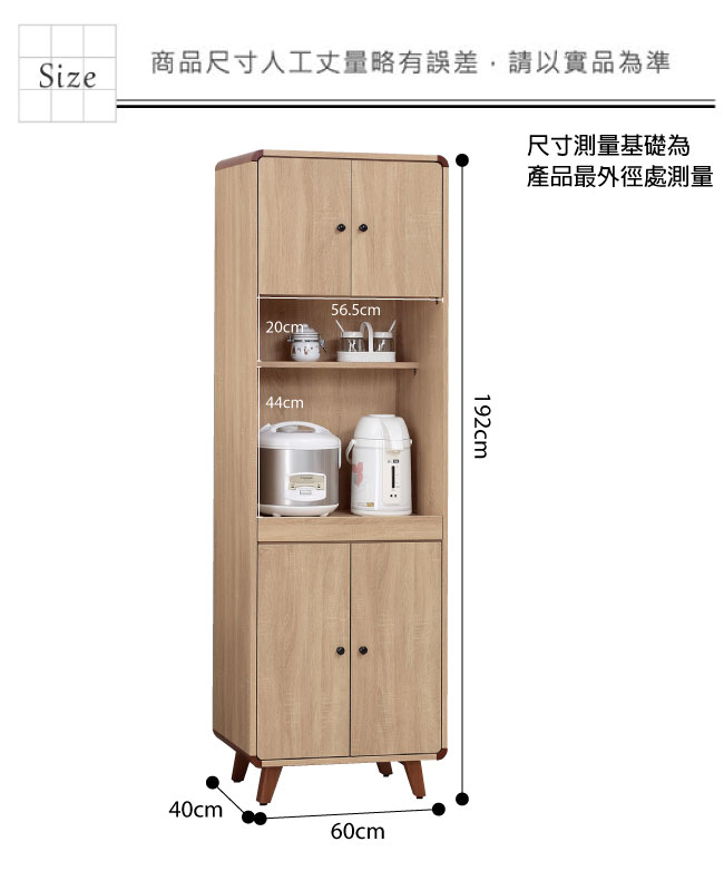 產品尺寸:(寬)60x (深) 40x(高) 192/ 公分
