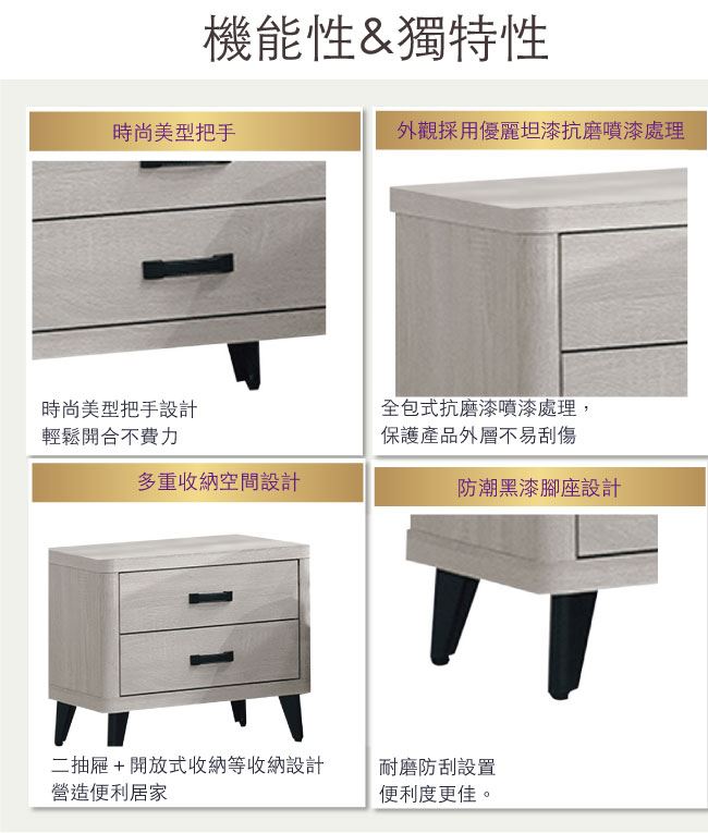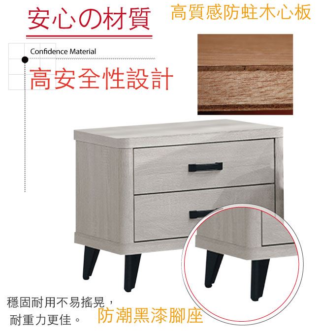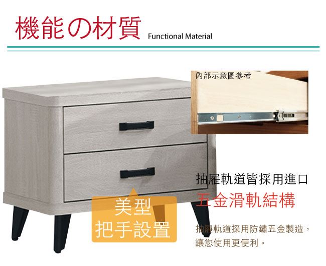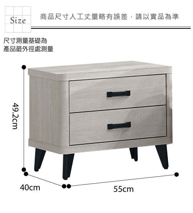 材質 | ◆產品名稱:【綠家居】蓋爾達 時尚1.8尺二抽床頭櫃/收納櫃 尺寸:(寬)55x(深)40x(高)49.2/公分 ◆材質: 材質:防蛀木心板+五金滑軌結構+防潮黑漆腳座 |