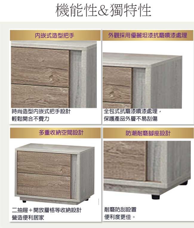 - 採用二抽屜+開放式收納