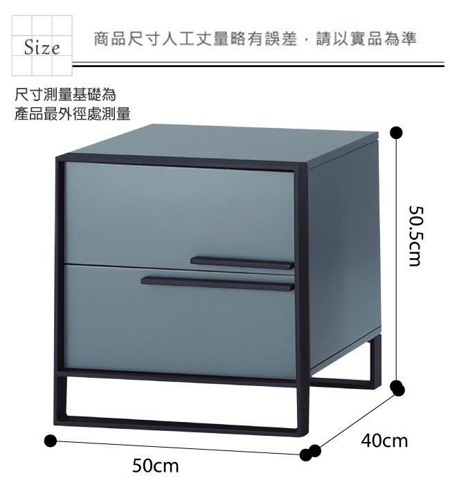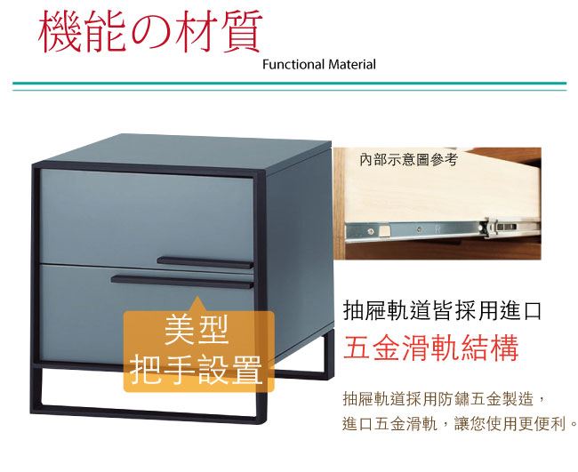 材質 | ◆產品名稱: 【綠家居】西雅達 現代風1.7尺二抽床頭櫃(左&右二向可選) 尺寸:(寬)50x(深)40x(高)50.5公分 ◆材質: 材質:防潮MDF板材+黑鐵砂腳座+五金滑軌結構 噴漆:防潮亮面噴漆處理